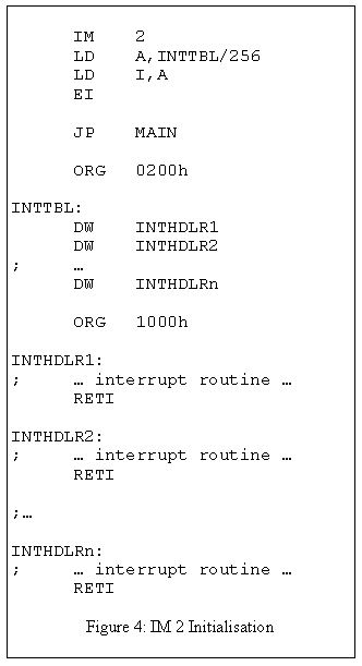 Figure 4 shows the basic interrupt mode 2 initialisation code.